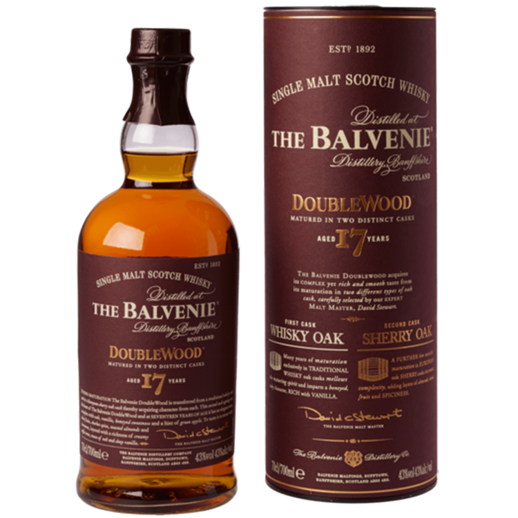 To craft The Balvenie DoubleWood 17 Year Old, the Malt Master returned to one of his most celebrated achievements - consecutive maturation in two different types of cask, a process often referred to as 'cask finishing'. This technique is at the heart of The Balvenie Double Wood - it sees the whisky matured first in American oak barrels, which impart soft sweet vanilla notes, before being transferred to European oak sherry casks, where the second cask ageing adds rich spicy flavours and a depth and fullness of flavour. The Double Wood 17 Year Old is anelder sibling to DoubleWood 12 Year Old and shares its honeyed, spicy characteristics, but it is distinctly different, with a striking richness and complexity. The extra depth and fullness of flavour are a must to be experienced for any enthusiasts of the 12 Year Old, or any Whisky lover for that matter.